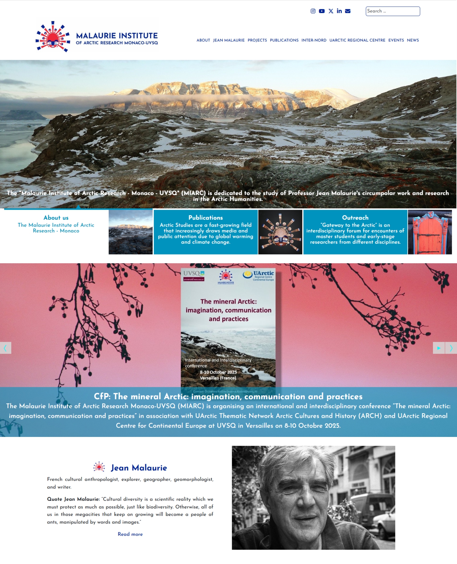 As part of its collaboration with MIARC, Arctic Portal designed and hosts the institute’s website, supporting the outreach and digital dissemination of its research and activities. Arctic Portal also designed the Jean Malaurie logo used by the institute.