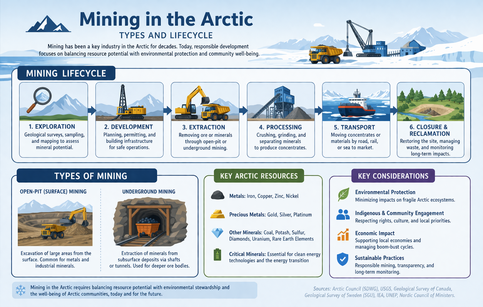 Mining has long been a key industry in the Arctic, alongside sectors such as fisheries and energy. It has played an important role in shaping infrastructure, settlement patterns, and economic development across the circumpolar North.