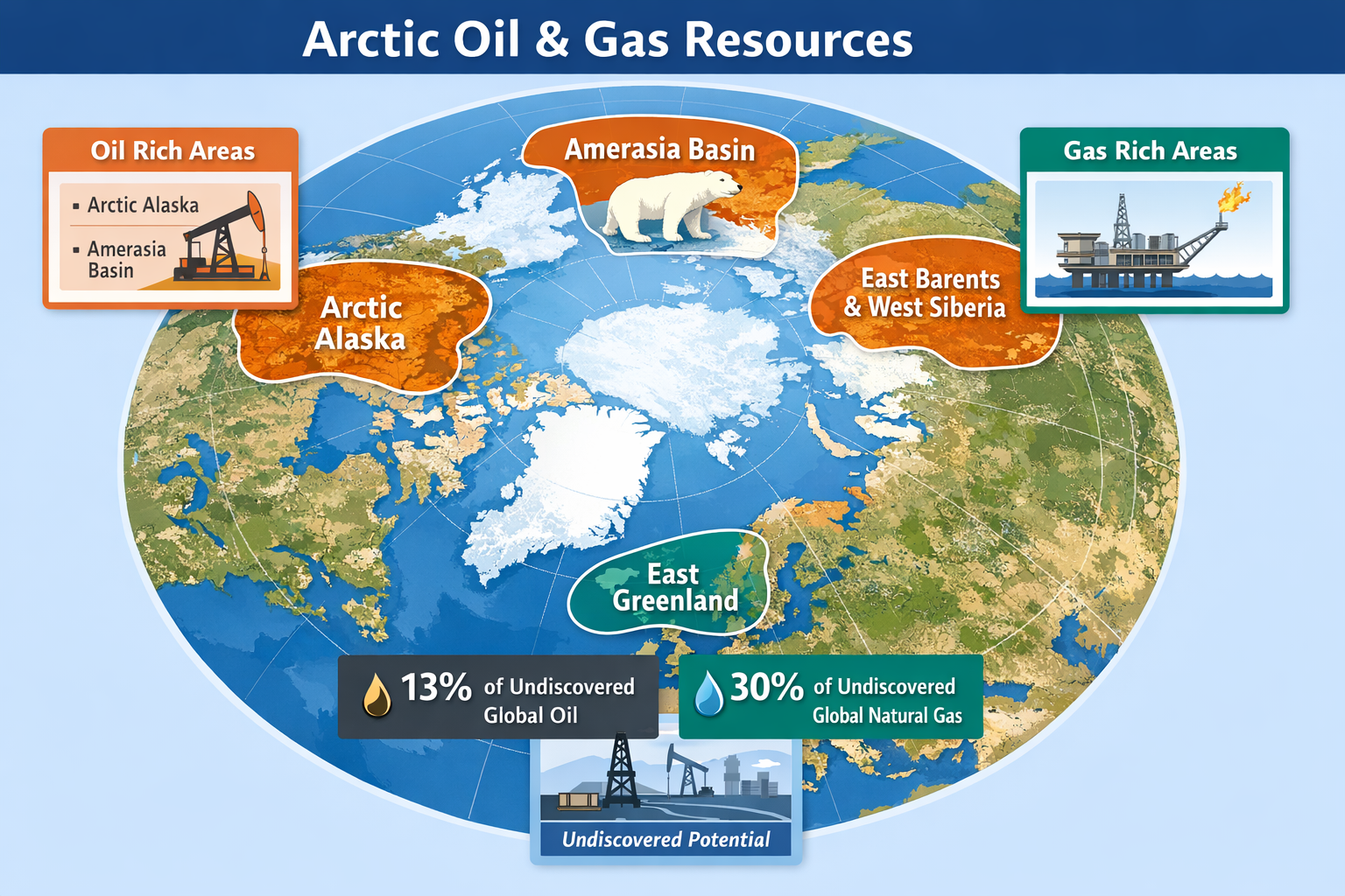 Together, these regions account for a substantial portion of the Arctic’s remaining oil potential.